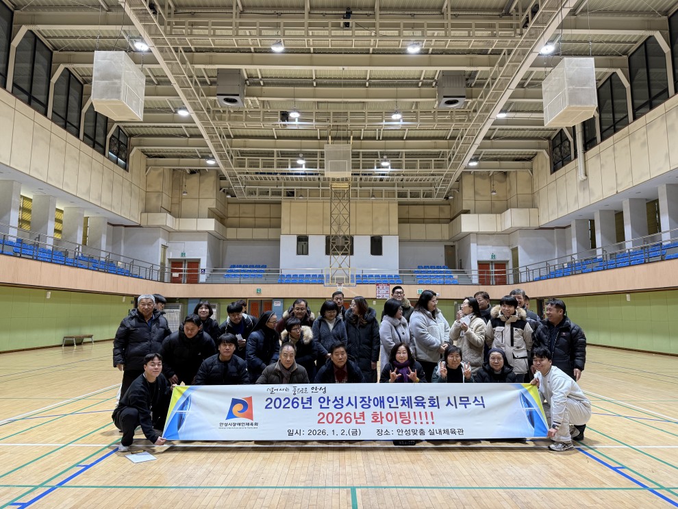 2026년 안성시장애인체육회 시무식 페이지 정보 작성자작성자 : 관리자 조회조회수 : 281회 작성일작성일 : 26-01-20 17:01 본문 2026년 안성시장애인체육회 시무식 목록 다음글2025 안성맞춤 발달장애인 가족 스포츠캠프 25.07.04